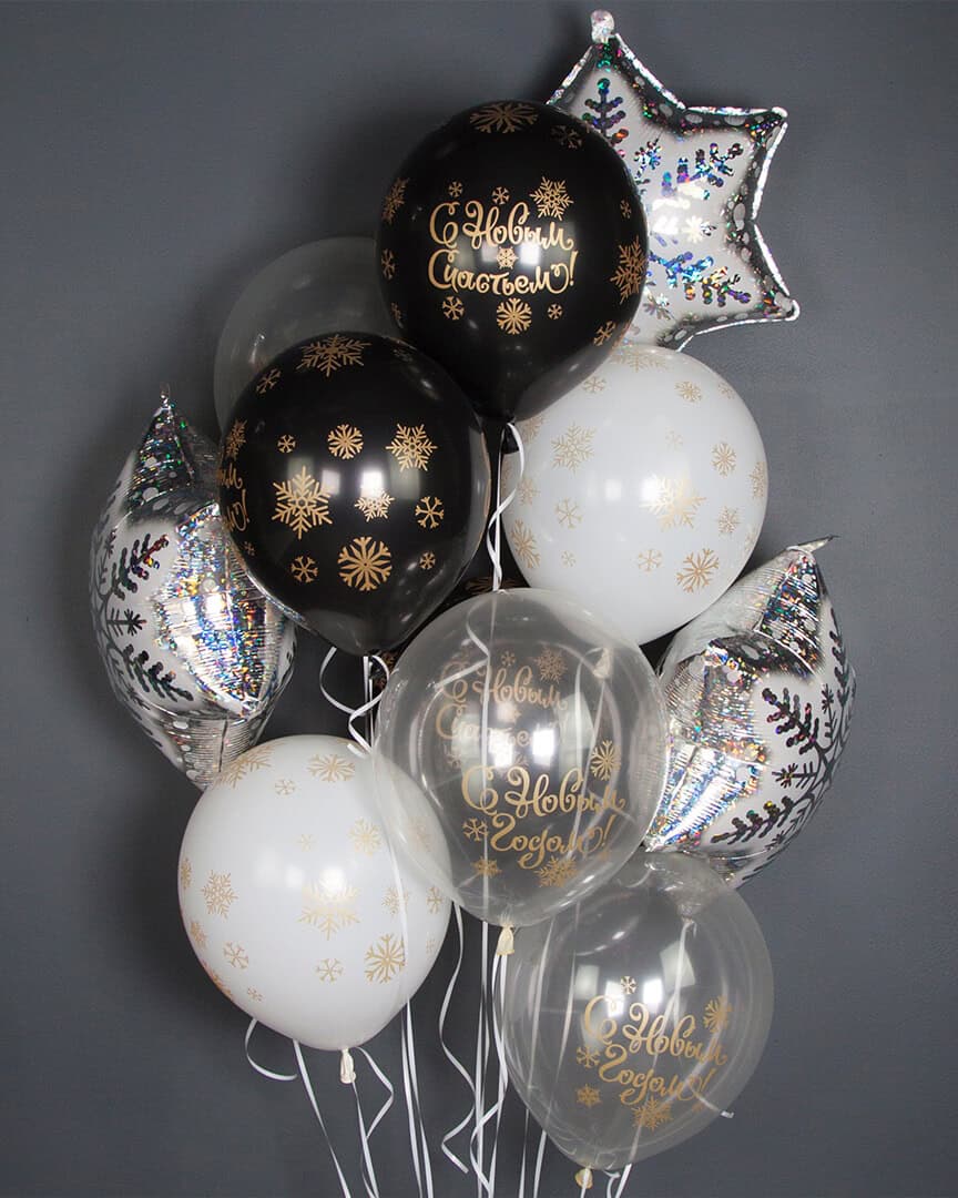 Главная страница » Каталог » Шары по событиям » На Новый Год » С Новым Годом! (золотые снежинки)